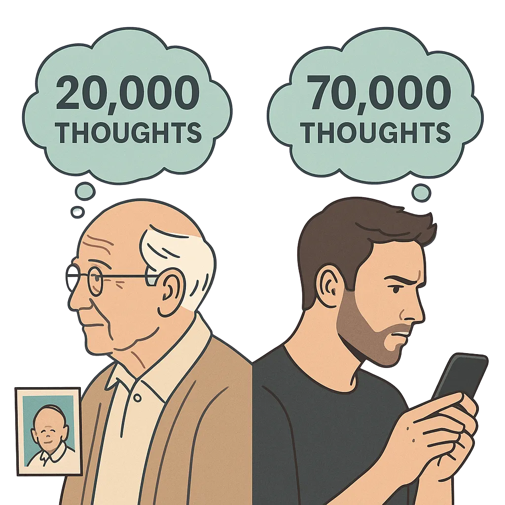 The average person filters 60,000–70,000 thoughts every day — most of them recycled noise.
